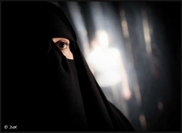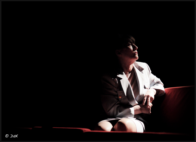 Es ist eine Mischung aus Erzählung und Handlung, da das Publikum buchstäblich als Geisel genommen wird. Sie ist übrigens erschreckend, diese schwarze Witwe, die mit ihrem schwarzen Ganzkörperschleier zwischen den Reihen herumläuft.